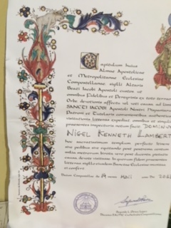 Great albergue at Padron but spoilt by group of Italian pilgrims who came in at 11.30 somewhat drunk. Did not get any sleep and started walking at 5.20am. 25k to Santiago arrived at Cathedral at 11. Queued for an hour to get my Compostela – job done!