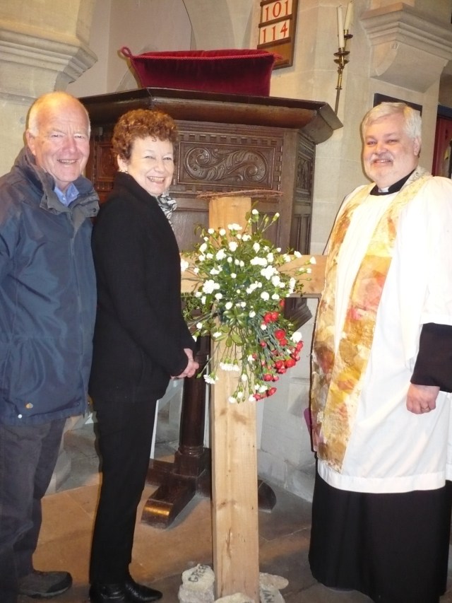 Steve is pictured with the Churchwardens, Vivienne Davies and Nigel Lambert.
